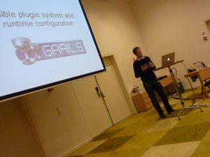 The second session was about the Grails plugin system. This session was equally astonishing as the first one. In another live coding session Graeme developed a plugin and demonstrated that Grails plugin development is not only something for infrastructure gurus but a useful way to modularize a Grails application.